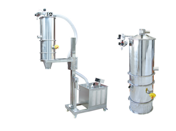 真空加料機(jī)由真空泵(無(wú)油、無(wú)水)、真空料斗、過濾器(有聚酯覆膜過濾器、PE過濾器、316L不銹鋼過濾器或鈦金屬過濾器多種選擇)、壓縮空氣反吹裝置、氣動(dòng)放料門裝置、料位自動(dòng)控制裝置、不銹鋼吸料咀、輸送軟管等組成,整套系統(tǒng)設(shè)計(jì)合理、制造精美。