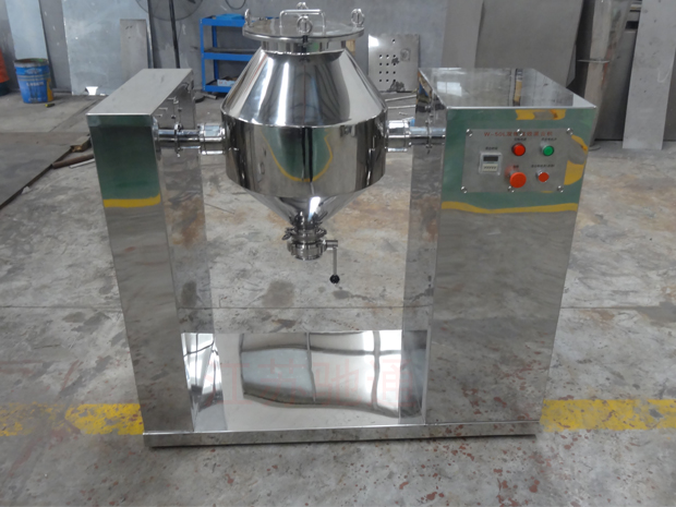 W型雙錐混合機(jī)由雙錐筒、機(jī)械密封、機(jī)架、減速傳動(dòng)、攪拌葉片等構(gòu)成。該機(jī)的工作過(guò)程是:把需混合的幾種物料通過(guò)真空輸送或人工加料投放到雙錐體內(nèi),上好筒蓋,開起設(shè)備,雙錐筒及攪拌葉片同時(shí)轉(zhuǎn)動(dòng),旋轉(zhuǎn)的雙錐筒使筒體內(nèi)物料產(chǎn)生紊亂翻滾混合,高速旋轉(zhuǎn)的攪拌葉片打碎結(jié)團(tuán)物料,使物料在筒體內(nèi)快速混合。W型雙錐混料機(jī)工作過(guò)程無(wú)死角,無(wú)沉積,可使混合的物料快速達(dá)到均勻一致的效果。
