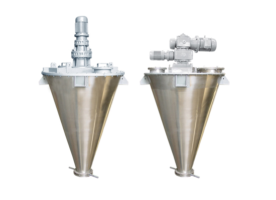 混合機(jī)根據(jù)物料性質(zhì)、啟動(dòng)方式、以及工藝要求配置不同功率、不同能力的驅(qū)動(dòng)裝置。 雙螺旋錐形混合機(jī)裝載專用的雙輸出減速機(jī)組合箱,采用擺線針輪、齒輪、蝸輪蝸桿形式組合定制而成。