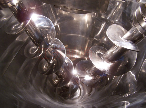 4.強(qiáng)大的輔助組件 雙螺旋錐形混合機(jī)加裝循環(huán)介質(zhì)夾套或蒸汽盤管夾套可實(shí)現(xiàn)在攪拌物料時(shí)的溫度控制。 混合機(jī)筒體與物料接觸面可增加針對(duì)物料性質(zhì)的防腐、防粘結(jié)、金屬隔離的涂層;攪拌螺旋可堆焊耐磨合金,用于磨損比較大的工況。添加少量液體時(shí),需配置噴液噴霧裝置,更有利于液體均勻的分散混合于主料內(nèi)。噴液系統(tǒng)由壓力源、儲(chǔ)液罐、噴頭三種基本組成模塊。