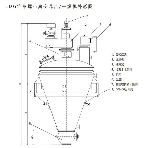 錐形螺帶混合/干燥機裝填率為有效工作容積的30%—100%,在此范圍內(nèi)不同裝料量的混合和干燥都可以得到一致的結(jié)果。